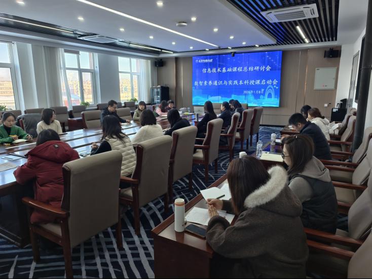 1月8日上午,信息学院在AI509会议室召开专题会议,系统总结《信息技术基础》课程首轮教学实践经验,并全面部署《数智素养通识与实践》本科课程下学期授课筹备与优化工作。会议由信息学院副院长苏东梅主持,院长迟恩宇、信息学院《信息技术基础》全体任课教师及《数智素养通识与实践》本科授课团队共同参会。