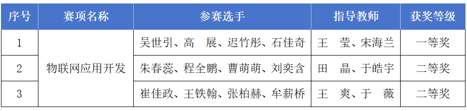 此次佳绩的取得,是我院物联网应用技术专业长期深耕教学改革、强化科研创新、深化校企协同育人的集中成果体现。专业依托新一代信息技术研发中心数智融合创新团队,持续提升教师科研能力与课程教学质量,构建“教、学、研、训、创” 一体化人才培养模式;同时紧密对接行业企业需求,深度推进校企合作,将企业真实项目、产业标准与技术规范融入实训全过程,有效提升学生工程实践与技术创新能力。未来,专业将继续以技能大赛为重要抓手,以科研反哺教学、以合作赋能育人,不断培养更多高素质技术技能型物联网人才。
